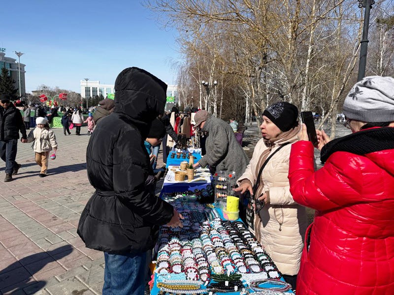 Ұлыстың ұлы күні Әз-Наурыз меркесі күні Республика алаңында сәндік-қолданбалы өнер шеберлері мен әуесқой қолөнершілер өз бұйымдарымен жәрмеңкеге қатысты, қатысушылар саны 61. Дәстүрлі бұйымдардан домбыра, құрақ және этно киімдер болды. Заманауи бұйымдардан түрлі әшекей, кәдесыйлар мен ойыншықтар келушілер назарына ұсынылды. Көрме-жәрмеңке сағат 9.00 ден 16.00 дейін өтті.