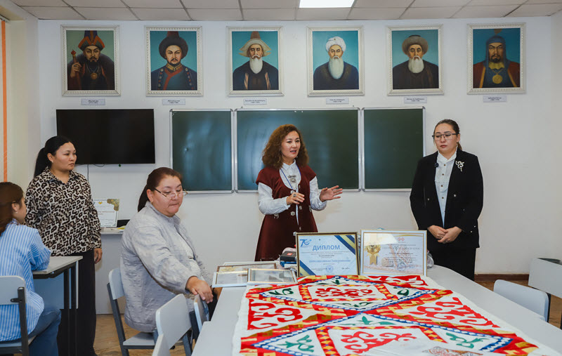 Научный сотрудник отдела народного и декоративно-прикладного искусства Жадыра Токтарбековна организовала в Восточно-Казахстанском техническом университете им. Д. Серикбаева познавательное мероприятие «Өрнекке толы құрақ». Целью мероприятия является популяризация традиционных ремесел, духовное развитие молодежи и популяризация ценности национального культурного наследия.