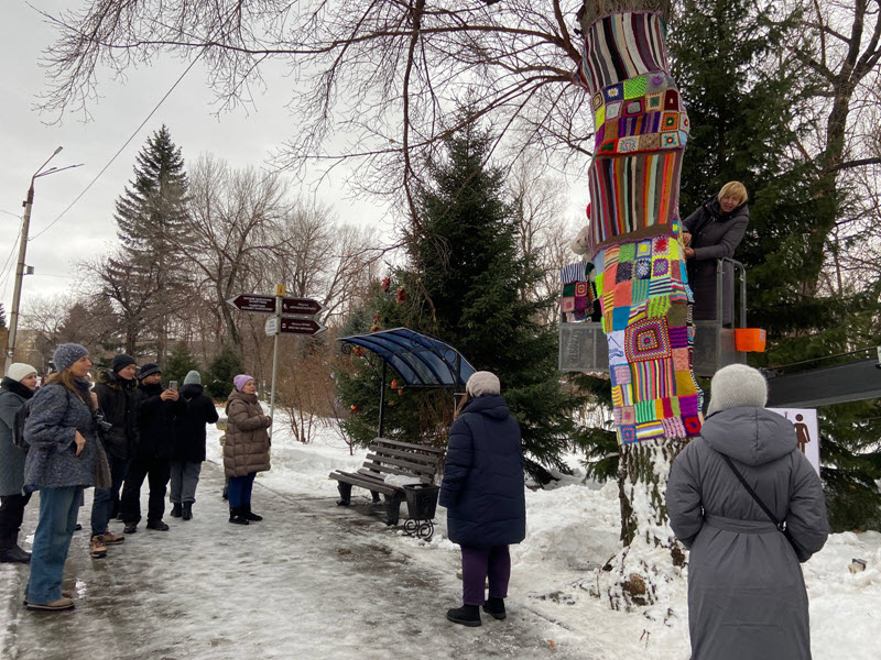 Участники акции – мастера-ремесленники, неравнодушные к своему краю горожане, дети и школьники откликнулись на предложение идейных вдохновителей и организаторов – украсить деревья изделиями, выполненными своими руками. Многие, кто побывал, в этнопарке видели одно из деревьев, оформленных вязаными лоскутками, и высказали теплые слова в адрес организаторов.