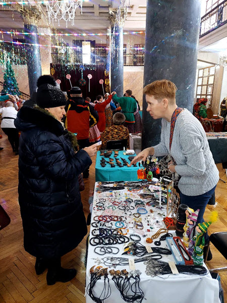 7 января в Доме дружбы на мероприятии посвящённому Рождеству, мастера декоративно- прикладного искусства представили свои изделия на всеобщее обозрение. Изделия из бересты, дерева: народные свистульки, сувениры из рогозы, глины, талисманы-амулеты, интерьерные куклы радовали гостей и продавались.