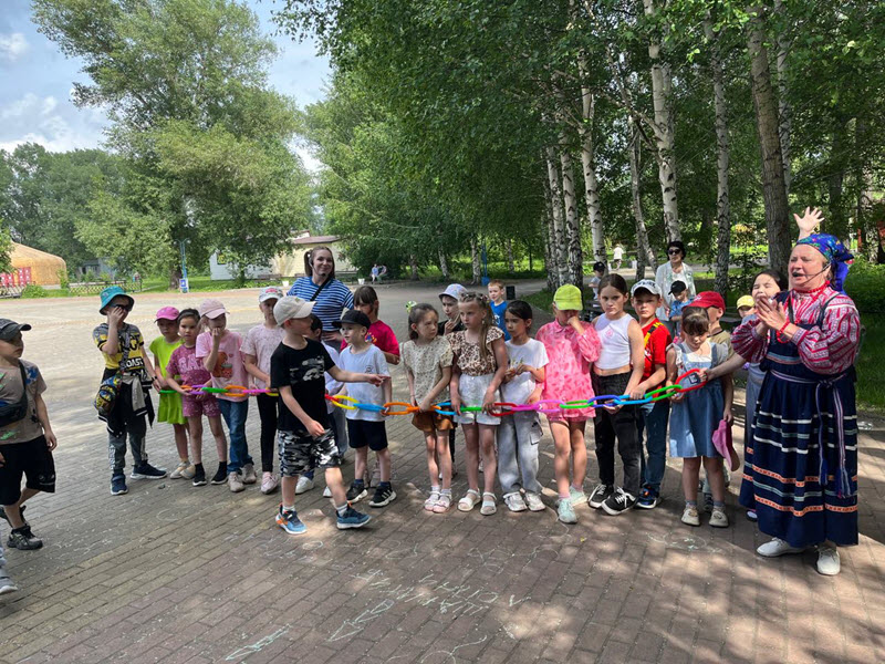 В этнографическом музее-заповеднике на территории Левобережного комплекса проходит театрализованная конкурсно-игровая программа «Погостим в цветочном царстве» для пришкольных лагерей города. Ребята вместе с хозяйкой этнодеревни и юнгой находят в парке ромашку, в которой спрятаны задания. Задания увлекают участников в путешествие игр и конкурсов. Дети с удовольствием проводят первые дни долгожданных каникул в музее.