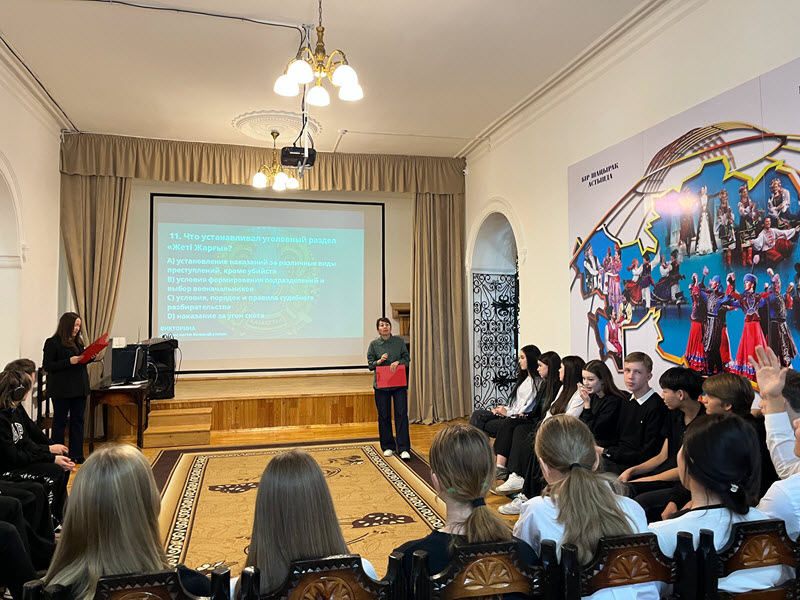 26 сентября 2025 года в рамках направления Концепции проекта «Әділ қоғам» сотрудниками информационно-образовательного отдела и экспозиционно-выставочной работы музея-заповедника было проведено мероприятие - культурно-историческая викторина «Кодекс чести Великой степи» для учащихся 10 классов КГУ «Средняя многопрофильная школа №37» г. Усть-Каменогорска.