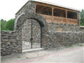 | Каменная ограда армянской усадьбы. Входные ворота кованые, металлические, ажурные, в виде арки. 13.07.2011 г. | |
