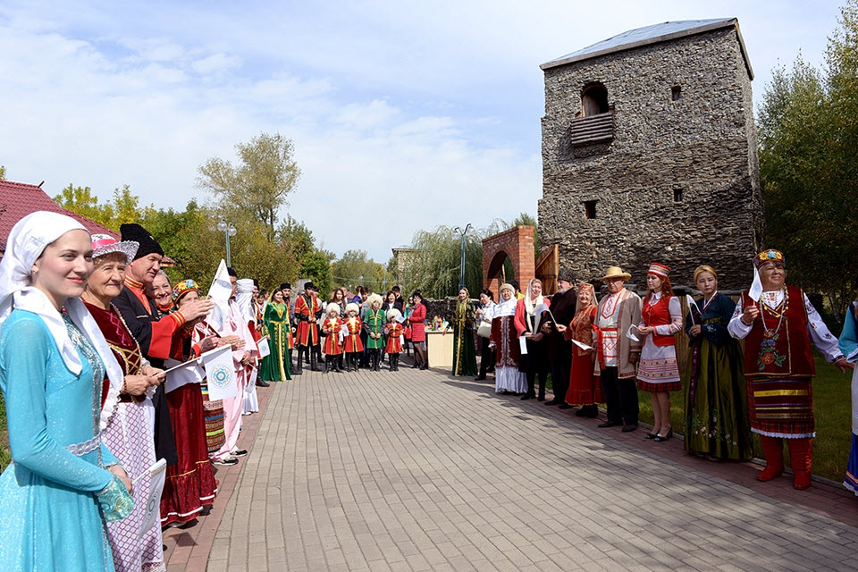 В этнографическом комплексе представители этнокультурных объединений встречали гостей песнями, плясками и угощениями.