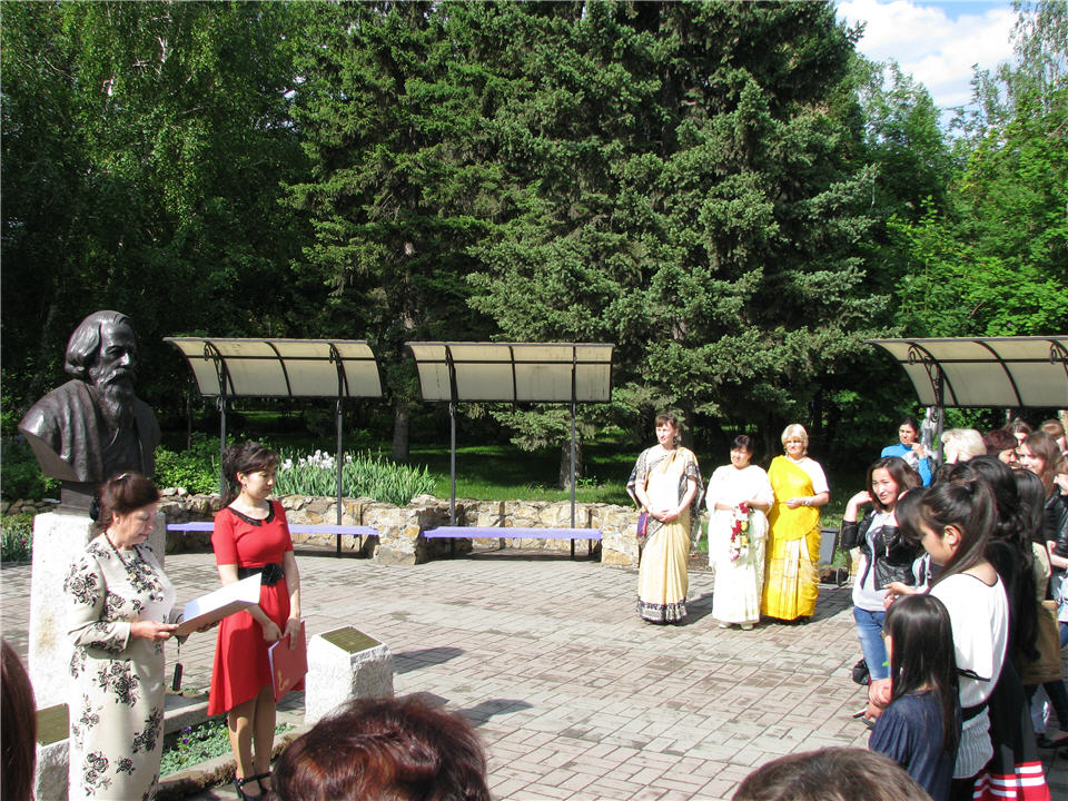 «Жастар» этнобағындағы Р.Тагор ескерткіші жанында ұлы үнді ақынының, суретшісінің талантына бас иетіндер жиналды. Іс-шара жүргізушісі, «Ауани мұражай» ақпараттық-білім орталығының меңгерушісі Т.И.Луцкая Үндістанның ұлы перзенті, патриоты және ел сұлулығының, оны мекен еткен халықтар мәдениеті ұлылығының жыршысы, Нобель сыйлығына Азия елдері ішінде бірінші ие болған Р.Тагор туралы әңгімелеп берді.